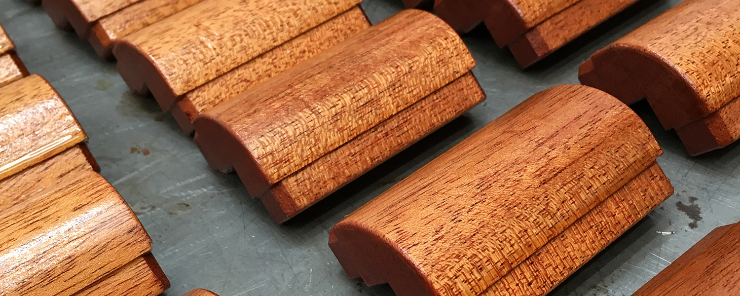 All of the handles and trim elements are made from mahogany and are manufactured in our own facility using a mixture of conventional and CNC machines. Each and every piece passes through the same pair of skilled hands for final sanding and finishing in food safe and environmentally friendly tung tree oil and beeswax.
